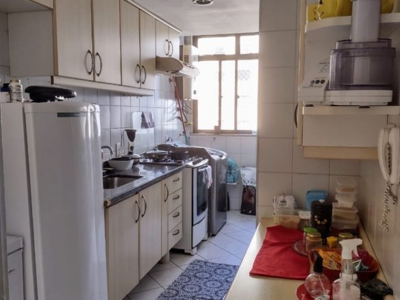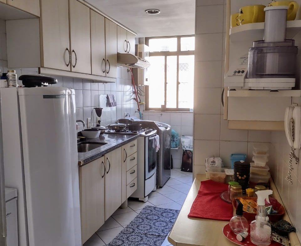 Imovel: 03 quartos, sendo um suíte, sala com rack, cozinha repleta de armários, area de serviço também com armário planejado, varanda com fechamento em vidro e linda vista mar, banheiros com armários planejados e box blindex, sol da manhã, andar alto, 01 vaga, 84M2.
